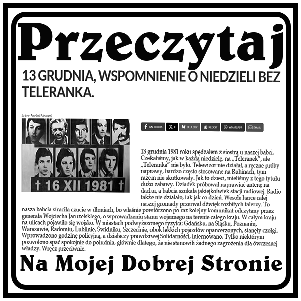 kucharką, opiekunką, praczką, panią od sprzątania. Dziwne, że dzisiaj tak często to trzeba Panom przypominać. Po hucznych obchodach nie pozostało nawet wspomnienie. Wszechobecna komercja, automaty z kwiatami, bukiety z Lidla czy Biedronki, to częsty, smutny obraz obchodzenia tego dnia. A szkoda. To było jedno z tych świąt, które mogło pozostać w takiej formie, w jakiej ja je zapamiętałem. Chociaż PRL słusznie przeminął, to nie wszystkie jego cienie są złe i nie wszystkie mgły przynosiły mrok. Warto o tym pamiętać, że chociaż goździki i tulipany zamieniliśmy na bukiety róż, rajstopy na prezenty o większej wartości materialnej, to najważniejsze pozostaną i tak trzysta sześćdziesiąt cztery dni, do następnego dnia kobiet.