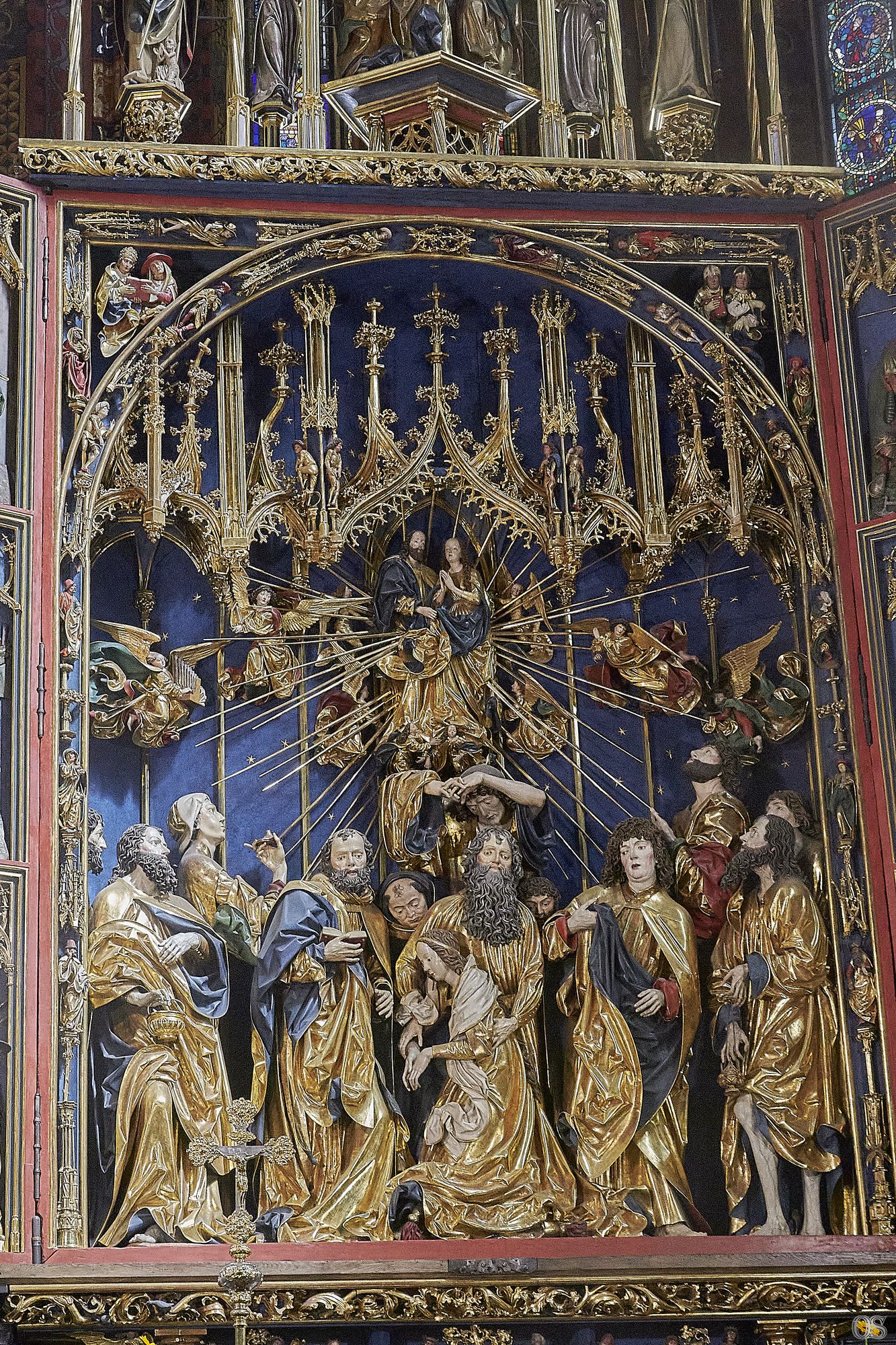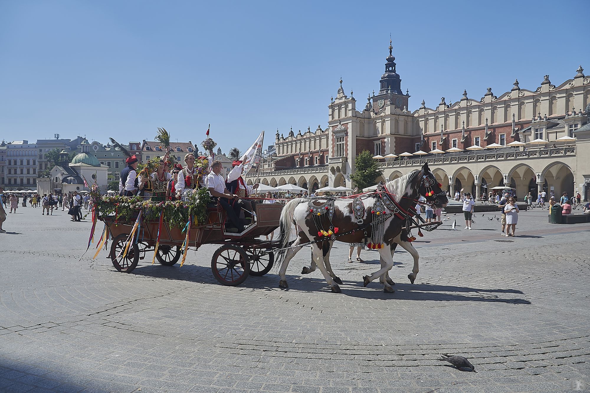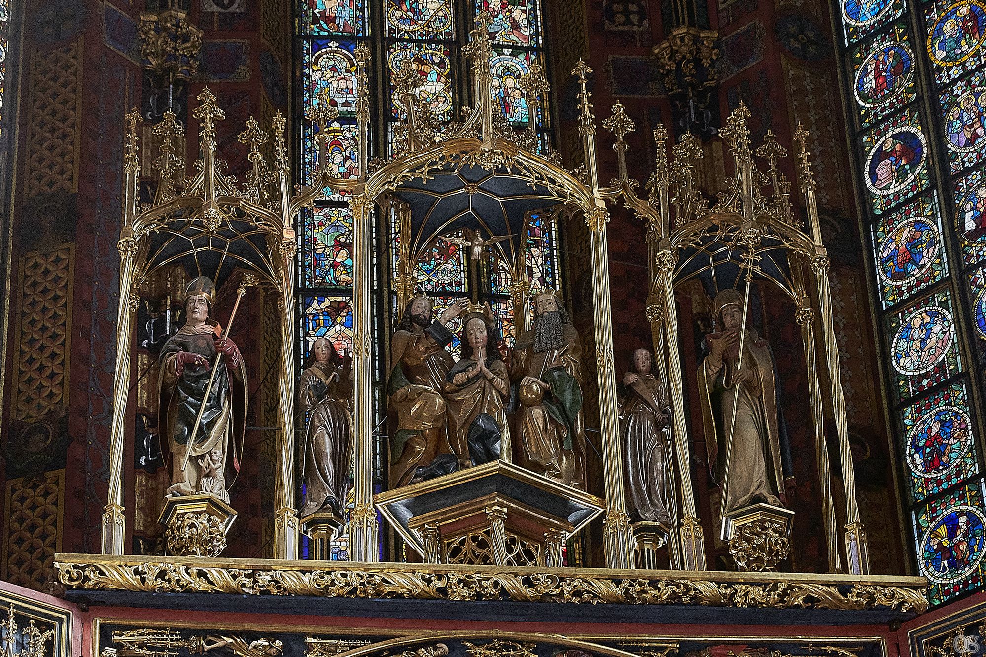 Rynek w Krakowie oszałamia. Mieszanka ludzi wielu kultur, wyznań, miesznina języków. Nad Rynkiem, wpisanym nie przez przypadek na listę Światowego Dziedzictwa Unesco, od wieków, królują wieże najważniejszego miejsca religijnego kultu (Obok Jasnej Góry), Kościoła Bazyliki Mariackiej. Tutaj należy podzielić zwiedzanie na dwa etapy. Pierwszym bezprzecznie jest wejście do środka i? I zachwycić się kunsztem średniowiecznych mistrzów pędzla, dłuta, budowniczych. Oczywiście zdecydowanie najcenniejszym zabytkiem znajdującym się w Kościele jest Ołtarz Wita Stwosza. Nie mogę pozbyć się wrażenia, że sam Ołtarz nie zrobiłby takiego wrażenia, gdyby został umieszczony gdzieś indziej. Absolutem jest spojrzeć na Ołtarz od jego podstawy, aż do gwieździstego sklepienia. Dopiero wtedy można zasiąść w kościelnych ławach i dokładnie obejrzeć to Dzieło i zrozumieć, jak ono jest ważnym i istotnym dla wszystkich, szukających pomocy u Boga, w którego wierzą. ps. Ja nie jestem wierzący, ale uwielbiam zabytki, historyczne artefakty, miejsca, które mocno odcisnęły swoją obecność na ludziach.